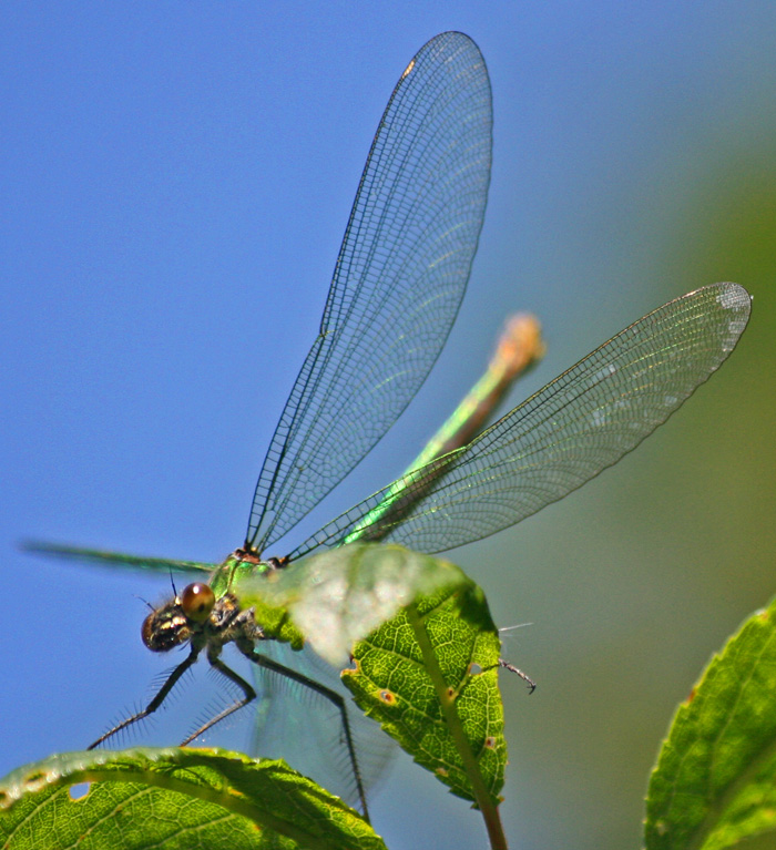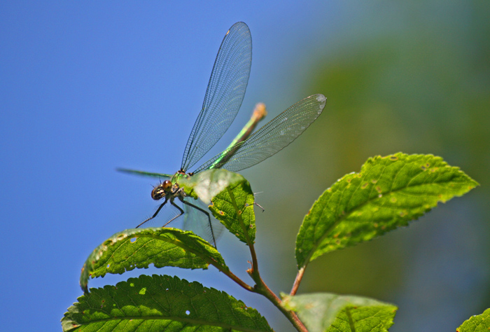I saw several female banded demoiselle damselflies by the River Trent in August 2012.